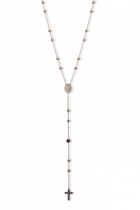 FEMME / Collier ESSENTIAL - Stainless steel Rose Gold - Cristal : Black / Longueur : 45 cm + 5 cm