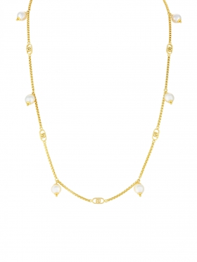 FEMME / Collier - Stainless Steel IP Gold / Blanc / Longueur : 60 cm + 5 cm