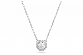 FEMME / Collier ESSENTIAL - Stainless steel Silver - Cristal : White / Longueur : 45 cm + 5 cm