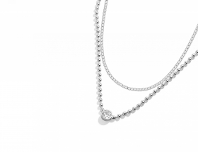 FEMME / Collier ESSENTIAL - Stainless steel Silver - Cristal : White / Longueur : 45 cm + 5 cm
