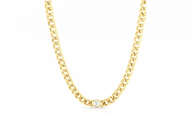 FEMME / Collier ESSENTIAL - Stainless steel Gold - Cristal : White / Longueur : 45 cm + 5 cm